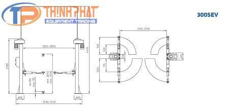 Cầu nâng 2 trụ kiểu trục vít đồng tâm 300SEV