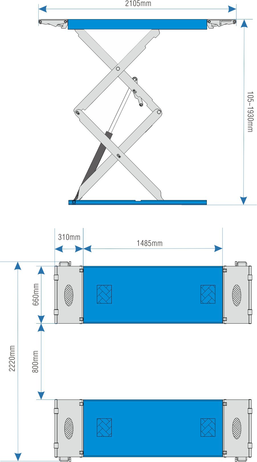 Chiều dài bàn nâng: 1485-2105mm