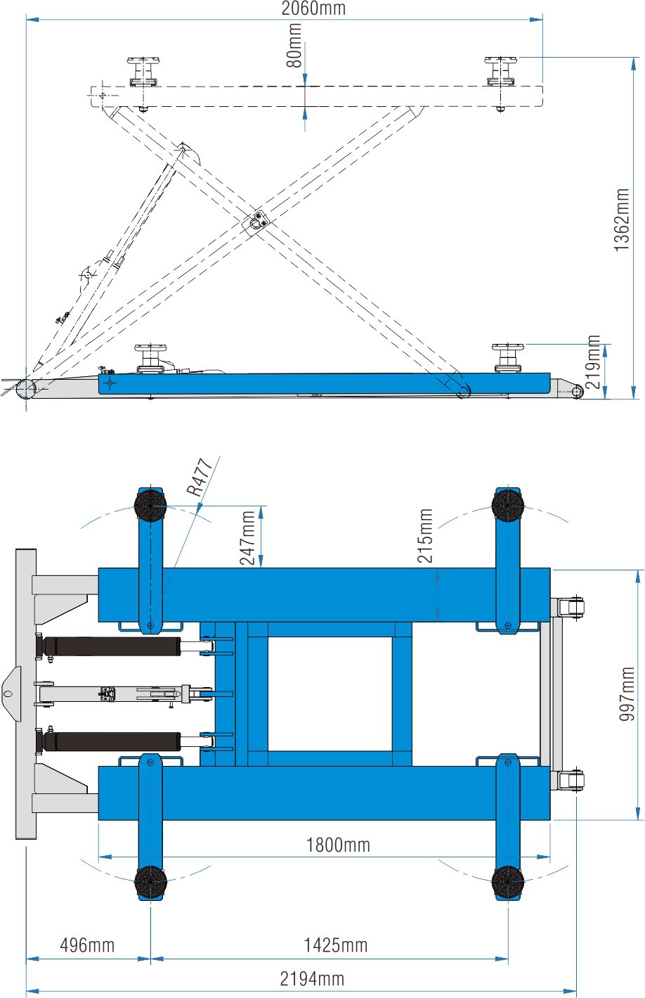 Bản vẽ kỹ thuật Cầu nâng cắt kéo di động HXL6128 2.8 tấn