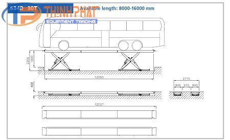 Chiều dài bàn nâng chính: 12.000 ( cả bàn dẫn 12.527mm)